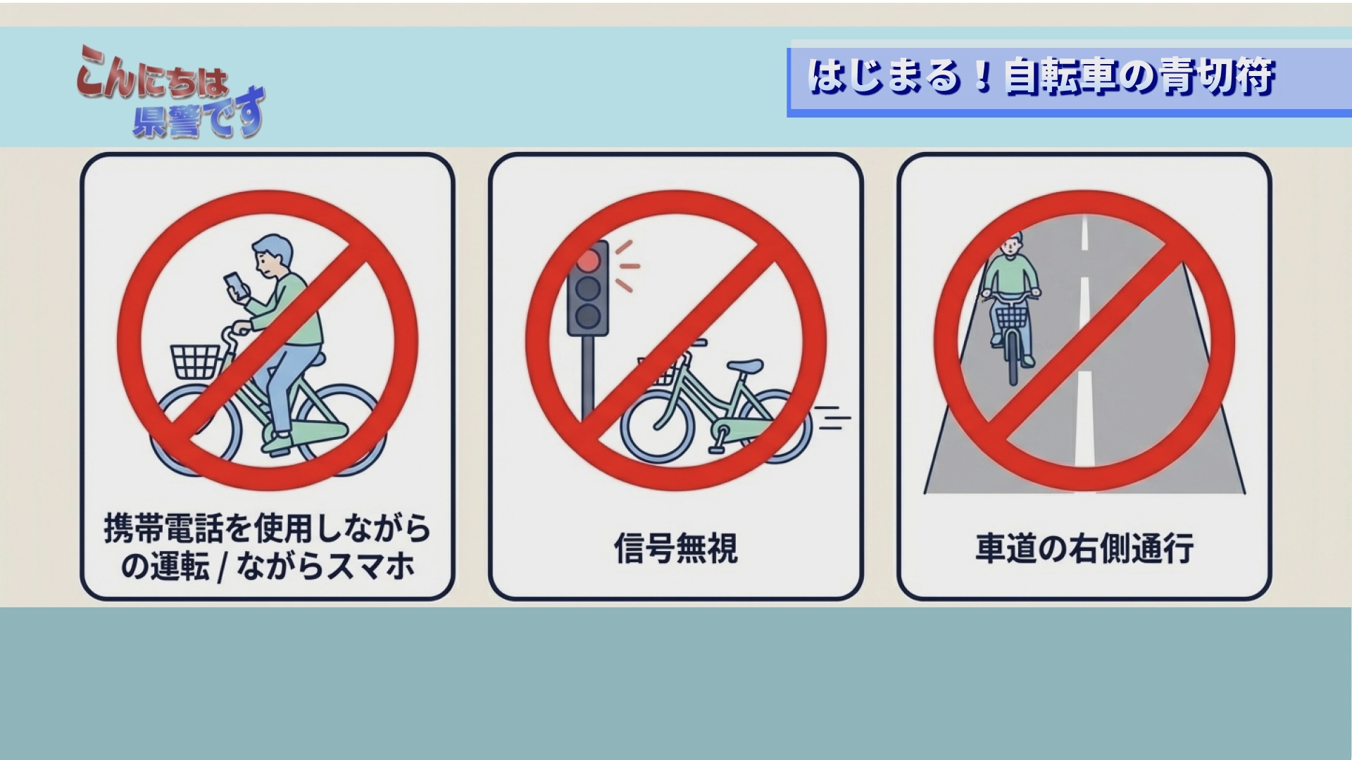 今回は「はじまる!自転車の青切符」と題して、道路交通法改正に伴う自転車への青切符制度について交通企画課の中田警部補に取材をするなど、制度の概要を紹介しています。