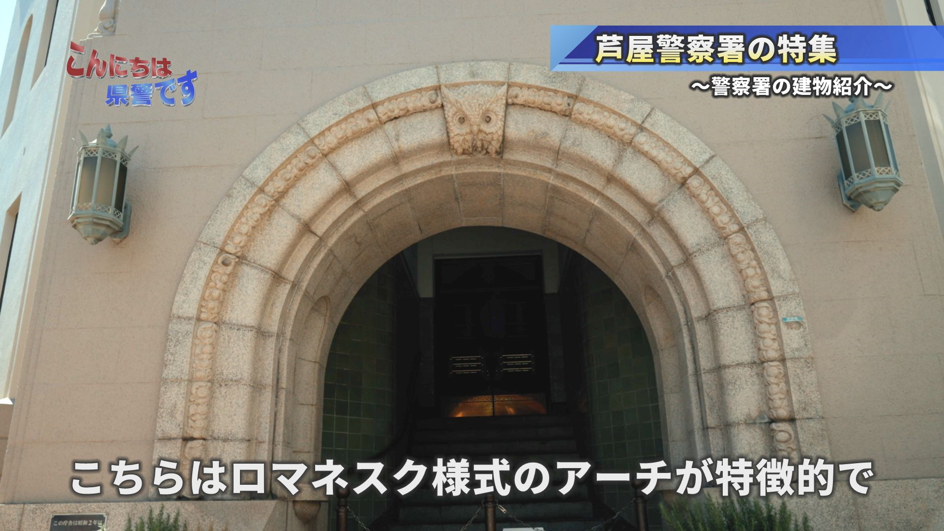 昭和2年に建築された芦屋警察署は、歴史あるロマネスク様式の建物が市民からも愛されており、今回はそんな建物の紹介を新人警察官の前川愛巡査が担当してくれています。