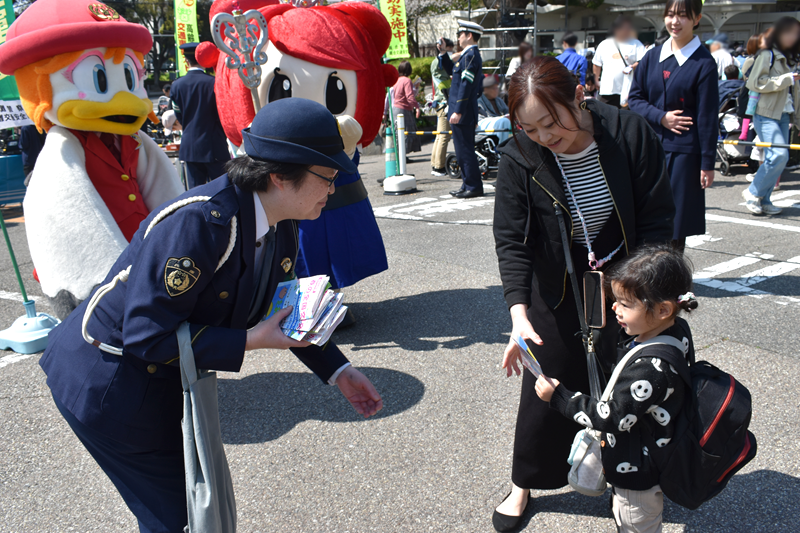 ![]() 電車内で、封筒等が入ったケースがシートに置き忘れられていることに気づいた時に、別のシートに座っていた男が移動してケースを手に取り、膝の上に置いた様子から不審に思っていたところ、男がケースを持って下車したので、盗んだのではないかと疑い、降車予定の駅ではなかった上、危険を顧みず、男を追跡し、男が建物に入ったところでスマホで110番に電話して、犯人の所在を通報し、犯罪の検挙に協力してくださいました。 ![]() 春の全国交通安全運動 ![]()