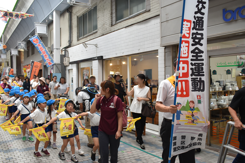 認定こども園光愛児園・水道筋商店街協同組合・灘区役所・灘交通安全協会と一緒にパレードを行いました。