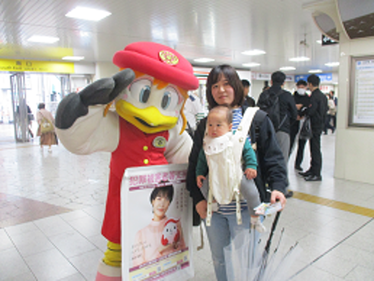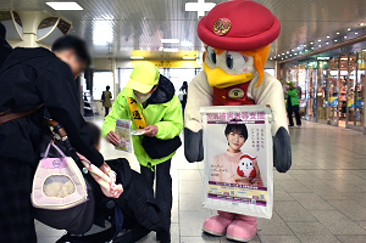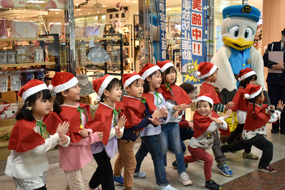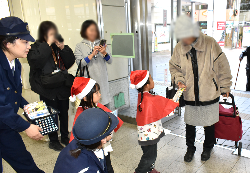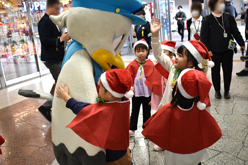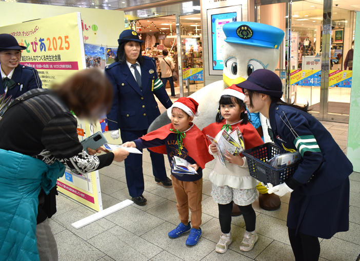 JR六甲道駅で、チビッ子サンタと交通事故防止を呼びかけるキャンペーンを行いました。