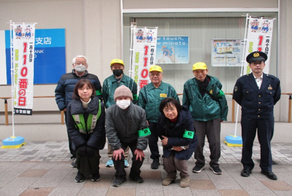 ![]() 1月10日(110番の日)に防犯協会委員、地域ふれあいの会委員の方々とともに春日野商店街において、広報活動を実施しました。 「緊急時 正しく使おう 110番」