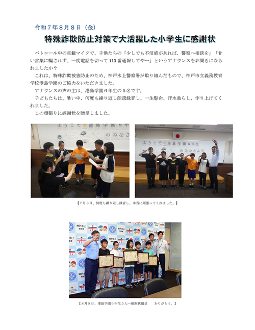 NEW!!特殊詐欺防止対策で大活躍した小学生に感謝状