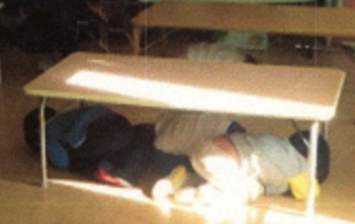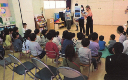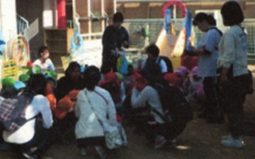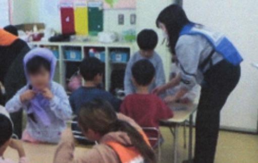 ![]() 👆園児対象の訓練:左が防災クイズ、右が防災頭巾作成訓練の様子です