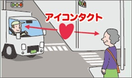 運転者(自転車含む)は、確実に一時停止して歩行者に対して「渡ってください」の動作とアイコンタクトで合図をする