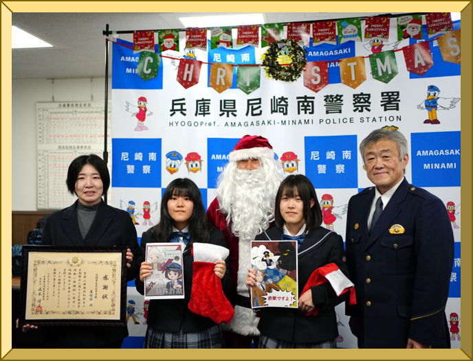 署長感謝状の贈呈 特殊詐欺被害を防止するため、尼崎市立大庄中学校美術部の皆さんのご協力を得てドアピタチラシを制作しました。 ![]() ドアピタチラシは、警察官が高齢者宅などを訪問した際、玄関ドアの内側に啓発チラシをピタっと貼らせていただくもので、詐欺の電話を受けて外出しようとするその時に、ドアに貼られたこのチラシが「ちょっと待って!それ詐欺ですよ!」と注意喚起して詐欺被害を未然に防ぐことを目的としています。 ![]()