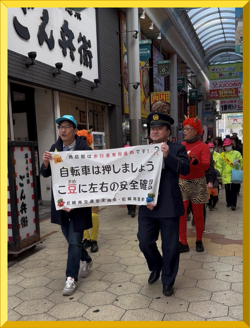 ![]() 大きな事故につながる 赤鬼さんの太鼓の音を合図に ![]() ![]() ![]() 自転車も ![]() 尼崎南警察署・尼崎南交通安全協会