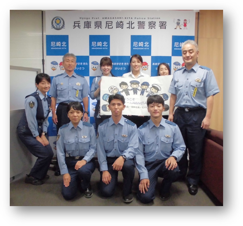 |  今年はいつまでも暑い日が続いていましたが、一気に気温が下がり、ようやく秋の装いになってまいりました。   特殊詐欺については、以前から繰り返しお伝えしてまいりましたが、このように、地域のみなさま方の協力を得て、積極的な啓発活動を行ってきた結果、みなさまの特殊詐欺への防犯意識も高まり、アポ電を詐欺の電話と見抜いて被害を防止したり、銀行やお店などでお金を振り込みそうになっている方に、職員・店員・居合わせたお客さん等が声を掛け、被害を止めてくださることが増え、文字どおり地域が一体となって特殊詐欺被害を防止しているところでございます。   尼崎北警察署長 田中 和弘   のじぎく賞の贈呈式  線路内に立ち尽くす女性を説得して命を救ったとして、尼崎市の女性に対して「のじぎく賞」が贈られました。   9月26日付けで、3人の新人警察官が警察学校を卒業し、尼崎北警察署の仲間になりました。先輩方と一緒に尼崎の安全・安心を守ってまいります!            特殊詐欺被害防止啓発活動への協力に  特殊詐欺被害を防止するため、生活協同組合コープこうべと園田学園大学の学生の協力を得て「特殊詐欺被害防止啓発マグネット」を制作しコープこうべ宅配のトラックに貼付して啓発活動を行うことになりました。    【特殊詐欺被害防止啓発活動出発式の実施】  特殊詐欺被害を防止するため、生活協同組合コープこうべと園田学園大学の学生の協力を得て「特殊詐欺被害防止啓発マグネット」を制作しました。        三菱UFJ銀行の皆様による特殊詐欺未然防止  三菱UFJ銀行塚口支店の皆様により、ロマンス詐欺の特殊詐欺を未然に防止していただきました。    積極的な声かけにより児童を保護  夕暮れ時に家族とはぐれ、帰路が分からず泣きながら歩いていた少女を保護していただいた女性に対して署長感謝状を贈呈しました。    災害に備えましょう  地震や台風、集中豪雨など、日本各地で自然災害による被害が発生しています。  【変更時期】     お問い合わせ先 尼崎北警察署交通課交通規制係    自転車乗車時はヘルメットの着用を!    ヘルメットはみなさんの命を守るための大切なアイテムです。   | ||||||||||||||||||||||||||