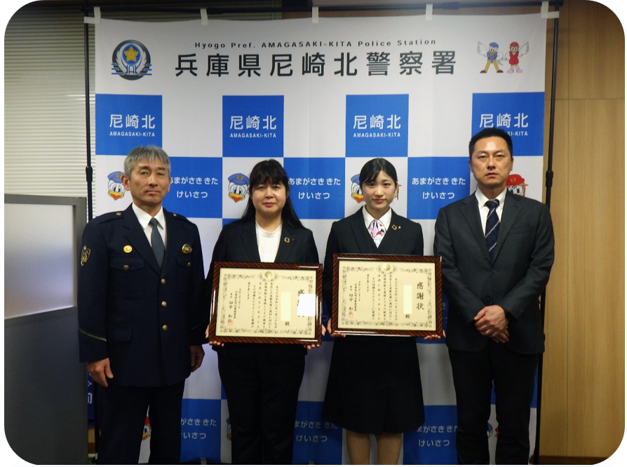 尼崎信用金庫の皆様による特殊詐欺未然防止 尼崎信用金庫尾浜支店の皆様により、特殊詐欺を未然に防止していただきました。 ![]() ![]()