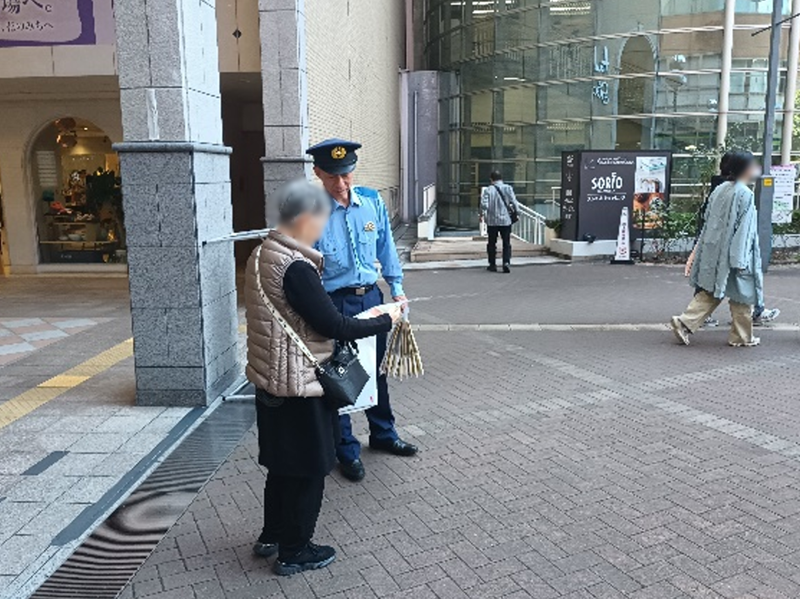 こんにちは。宝塚警察署長の中野です。 YouTube兵庫県警察公式チャンネルへリンクします。 宝塚警察署においても、宝塚市とともに、市民の皆さんへの理解深めるために、広報啓発活動を行っております。 ![]() ![]() 令和7年10月30日 阪急宝塚駅周辺での啓発活動 また宝塚市では、犯罪被害者週間の期間(11月25日(火)~12月1日(月))に、中央公民館1階ホワイエにおいて、「犯罪被害者等支援啓発パネル展」を予定しています。 ![]() ![]() 令和7年10月13日、阪急宝塚駅構内Gコレクション前広場において、令和7年全国地域安全運動に伴うイベントを行いました。 ![]() 宝塚区内郵便局で募集した特殊詐欺被害防止標語優秀作品に対して表彰を行いました。 宝塚市少年少女音楽隊宝塚市立長尾小学校バトン隊による「子、孫から祖父母へ特殊詐欺被害防止の啓発バトンを渡そう」と願いを込めたバトン演技を行いました。 ![]() ![]() ![]() 表彰のあとは、宝塚市少年少女音楽隊宝塚市立長尾小学校バトン隊の児童、学生防犯ボランティア「ブルーフェニックス隊」の学生等とともに、啓発チラシ等を配布しながら、特殊詐欺被害防止を呼びかけました。 ![]() ![]() 令和7年10月8日、宝塚警察署において、特殊詐欺被害防止啓発チラシの作成にご協力いただいた、宝塚市立宝塚中学校美術部の生徒の方に、署長感謝状を贈呈しました。 ![]() ![]() ![]() ![]() 作成頂いた 署長感謝状の贈呈 宝塚警察署管内においては、連日のように特殊詐欺の予兆電話がかかってきています。 ![]() ![]() ![]() ![]() ![]() 令和7年8月末現在、全国の警察から指名手配されている者は、凶悪事件等で特に警察庁が指定している重要指名手配被疑者をはじめとして、約590人に上っています。 ![]() |