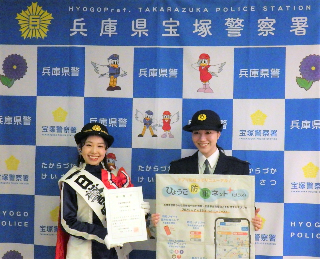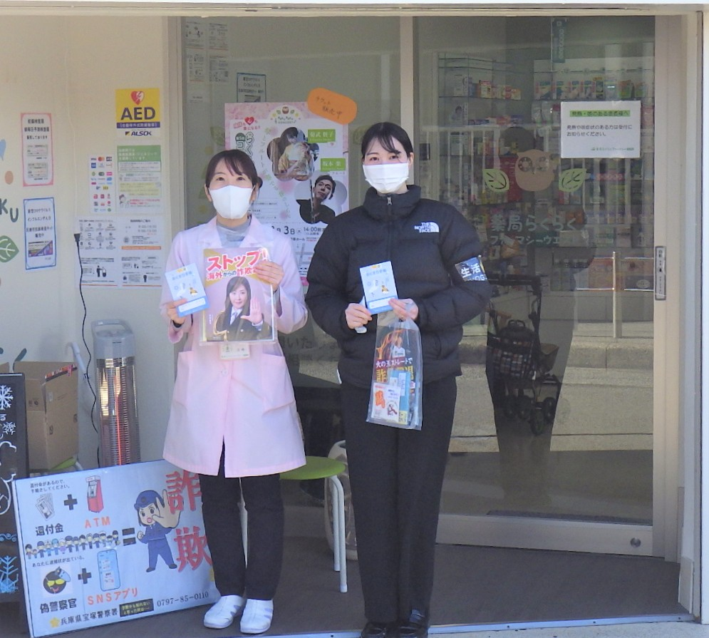 こんにちは。宝塚警察署長の中野です。 宝塚警察署では、この年末年始、初詣客の雑踏事故を未然に防止するため、参拝客が多く見込まれる「清荒神清澄寺」と「中山寺」において、雑踏警戒活動を行いました。 ![]() 清荒神清澄寺での警戒 ![]() 中山寺での警戒 参拝される皆さんが、警察官や警備員の指示に協力していただいたおかげで、事故等無く任務を達成することが出来ました。 兵庫県警察では、「ひょうご防犯ネット+(プラス)」で、兵庫県内の犯罪情報や、防犯機能をアプリで提供しています。 ![]() ![]() トップ画面 ![]() 防犯ブザー機能 ![]() 性犯罪対策機能 薬剤師会等と連携した ![]() 令和8年1月22日より、宝塚市薬剤師会等と連携した特殊詐欺被害防止を啓発する活動を行っています。 |