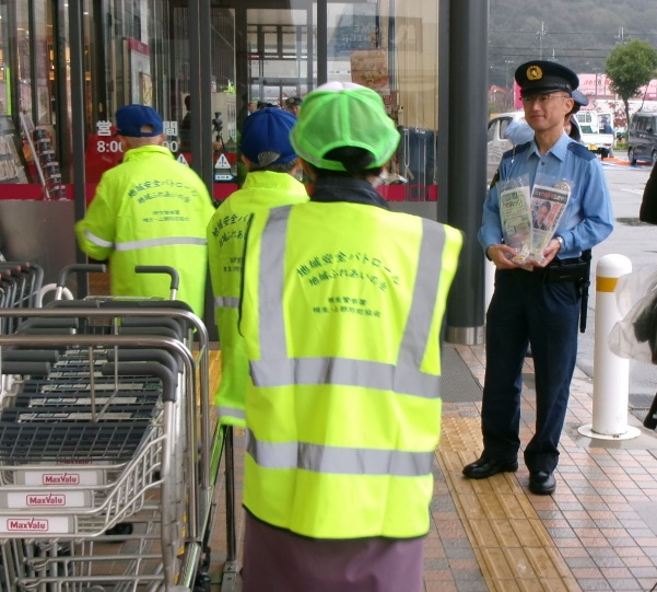 特殊詐欺被害水際阻止キャンペーンの実施 上郡町や管内の有機栽培農家等の協力を得て、商業施設で特殊詐欺被害防止のため、「勇気(有機)をだして声掛けを!」と呼びかけながら、勇気(有機)米と防犯ビラを利用客に対し配布しました。 ![]()