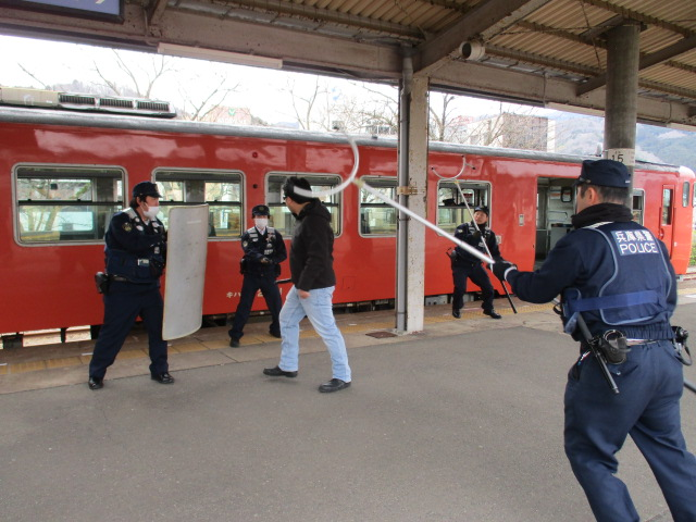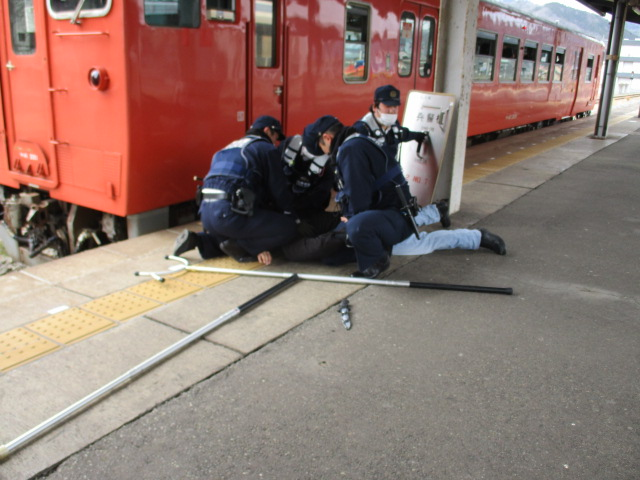 みなさんはじめまして、この春から南但馬署長として着任いたしました ![]() ![]() ◎令和8年度第1回の受付は4月3日(金)までです ![]() 3月6日、管内のJR和田山駅において、JR西日本豊岡運転区職員、南但消防本部朝来消防署員及び当署員等による合同テロ対応訓練を実施しました。 ![]() 運転士へ不審者の申し出 ![]() 運転士から指令係への連絡 ![]() 乗客へのナイフによる攻撃 ![]() 列車内からの避難誘導 ![]() 被疑者の制圧 ![]() 被疑者の逮捕 ![]() 負傷者の救護・トリアージ ![]() 負傷者の搬送 ![]() ※ トリアージとは、災害や事故などで多数の負傷者が同時に発生した際に、限られた医療を最大限に活用し、一人でも多くの命を救うため、緊急度や重症度に基づいて治療や搬送の優先順位を決めることです。 ![]() 当署管内においてにせ警察を騙って現金を騙し取る特殊詐欺(オレオレ詐欺)の予兆事案が発生しました。 ![]() ![]() ~令和8年2月刑法犯認知状況(暫定値)~ 1 県下 3 当署認知事件の特徴 (1) 知能犯3件のすべてが特殊詐欺被害である (2) その他7件のうち5件が器物損壊であり、空き家の窓ガラスが壊されている被害が発生している ![]() 前任である堀口署長の残された署風を継承しながら、署員一丸となって管内の治安維持に邁進してまいりますので、どうぞよろしくお願いします。