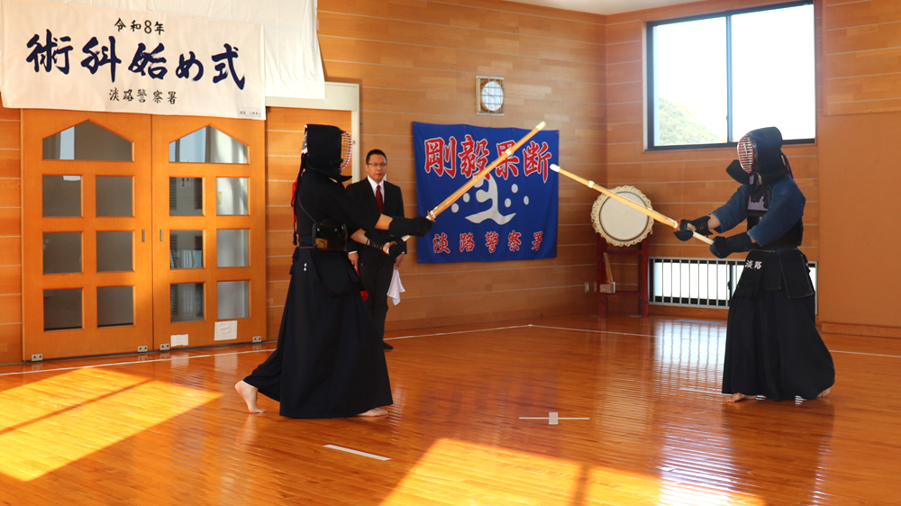 2 「NTT西日本の無償化サービス」 ・「ナンバー・ディスプレイ」 3 「国際電話の利用休止サービス」 詐欺グループは、海外の拠点から国際電話をかけてくる場合があります。被害を防ぐため、国際電話番号の発信・着信を無償で休止できます。 固定電話を常時留守番電話に設定し、不審な電話に出ないことも防犯対策として有効です。犯人からのアプローチを遮断し、皆様の大切な財産を守りましょう。 令和8年淡路術科始め式 令和8年1月19日、当署道場において「令和8年術科始め式」を開催しました。 ![]() ![]() ![]() 令和7年淡路の守りの賞表彰式 令和7年11月8日に淡路防犯協会・淡路市主催の「令和7年度安全・安心なまちづくり淡路市民の集い」がしづかホールで開催されました。